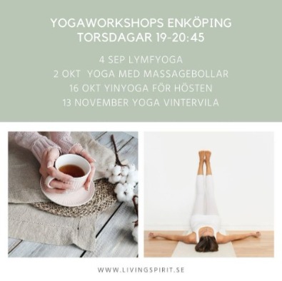 I höst bjuder Emma in till olika yoga-workshops med varsamt tema för kropp och själ. Varje tillfälle hålls på en torsdag kl. 19.00–20.45.