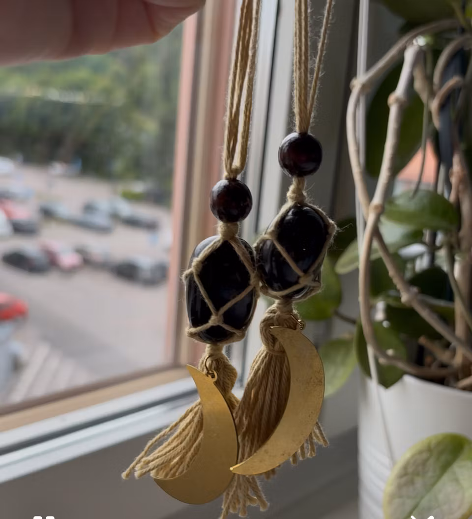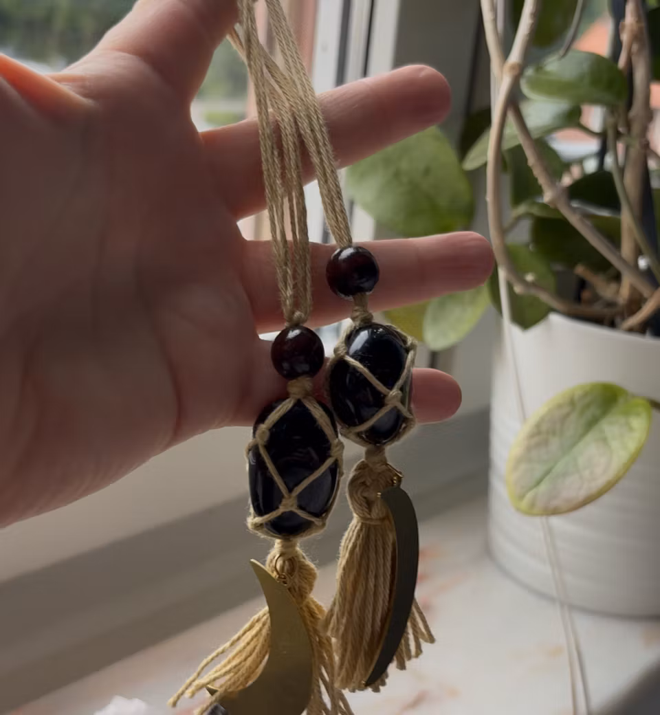 Hänge handgjort med en turmalin cuddle stone, utmärkt att hänga i hallen för att ta upp negativ energi som går in genom dörren och därför beskyddar till hem.