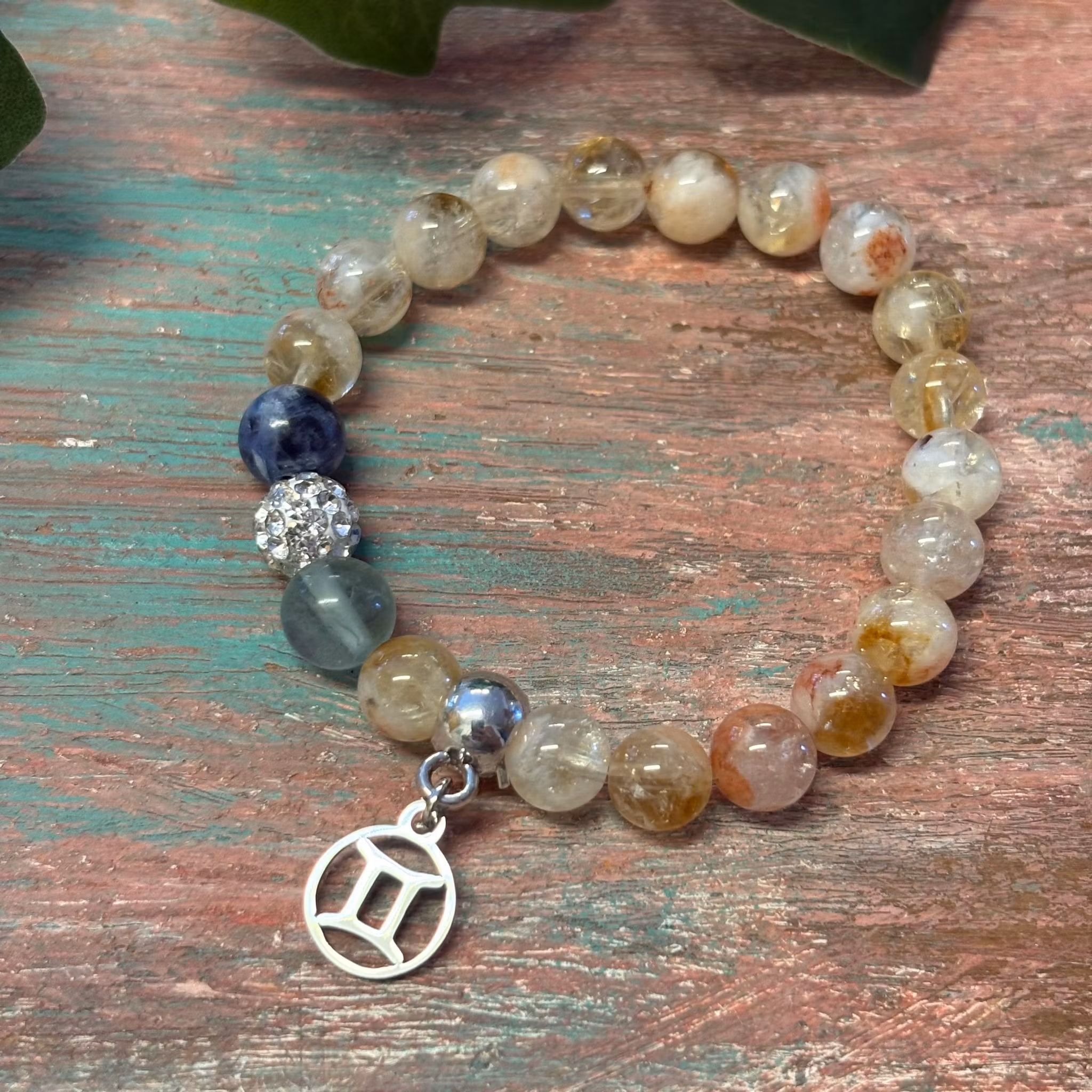 Ett livfullt och balanserande armband med citrin, fluorit och sodalit – kristaller som speglar Tvillingens nyfikna sinne, snabba tankar och kommunikativa kraft.