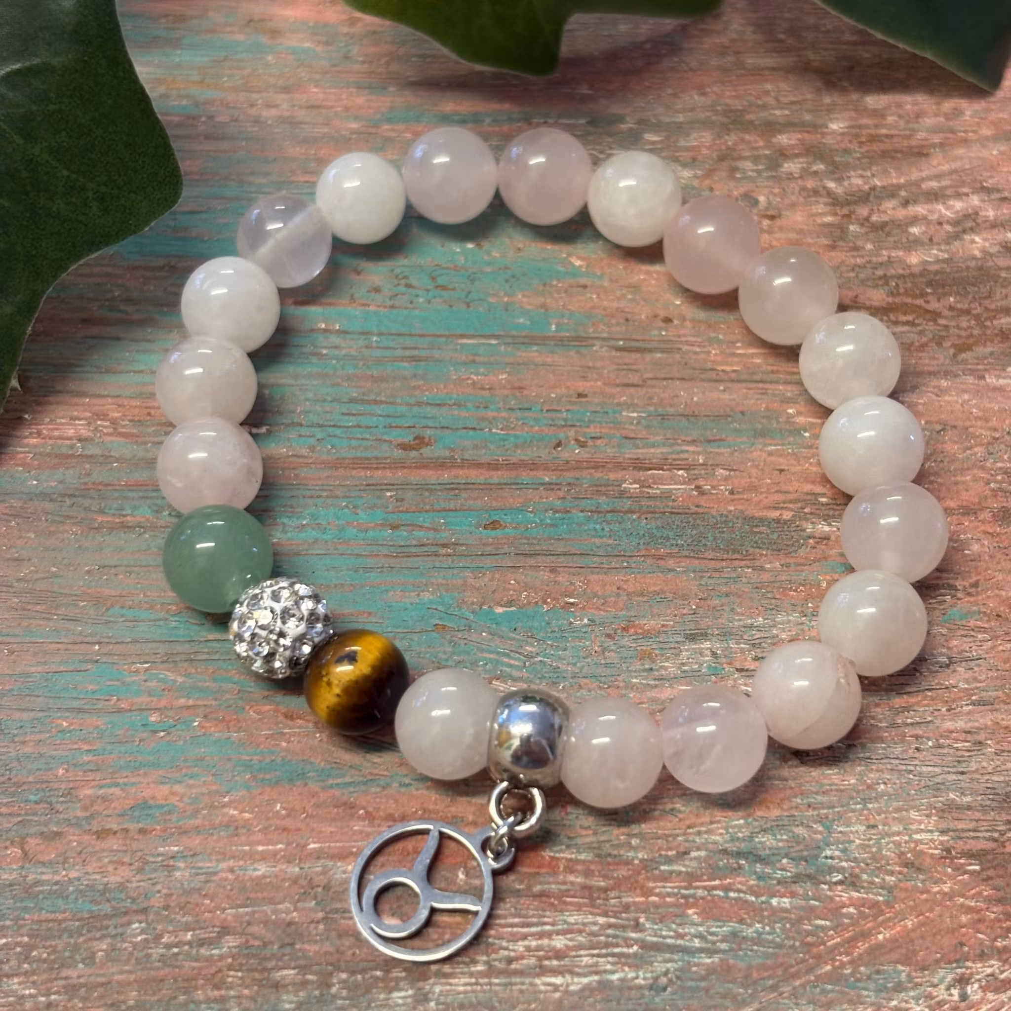 Ett jordande och harmoniskt armband med rosenkvarts, tigeröga och aragonit – kristaller som speglar Oxens lugn, lojalitet och inre styrka.