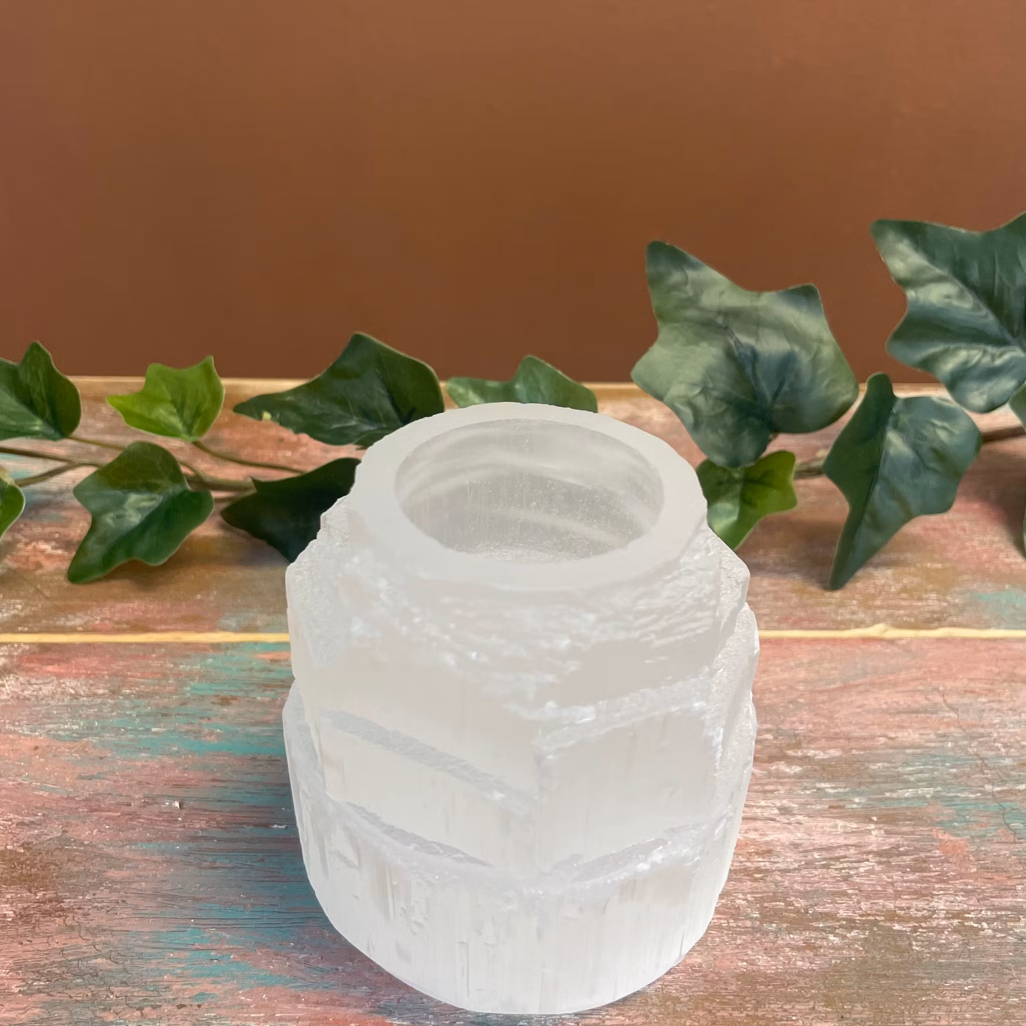 Värmeljushållare tillverkad av Selenit