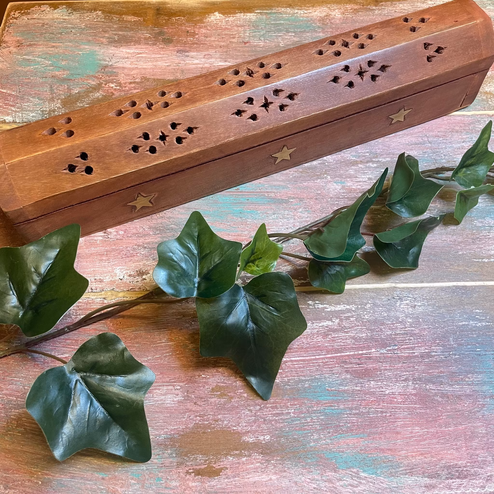 Rökelsebrännare i en box, kan stängas när rökelsen är tänd , vilket gör den säkrare från barn och djur.