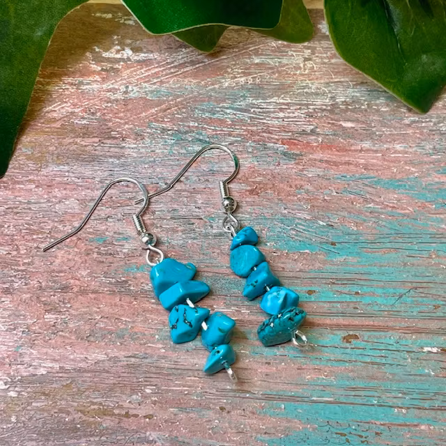 Dessa örhängen är tillverkade i sterlingsilver 925 och har chips bilar av stabiliserad turkos.