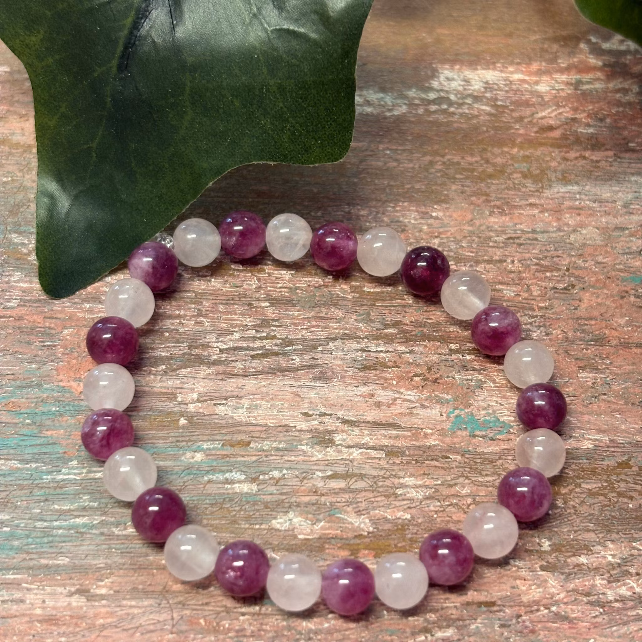 Armband med lepidolit och rosenkvarts – stenar som skapar inre ro, trygghet och en kärleksfull energi. För barn som behöver extra närvaro och harmoni i hjärtat.